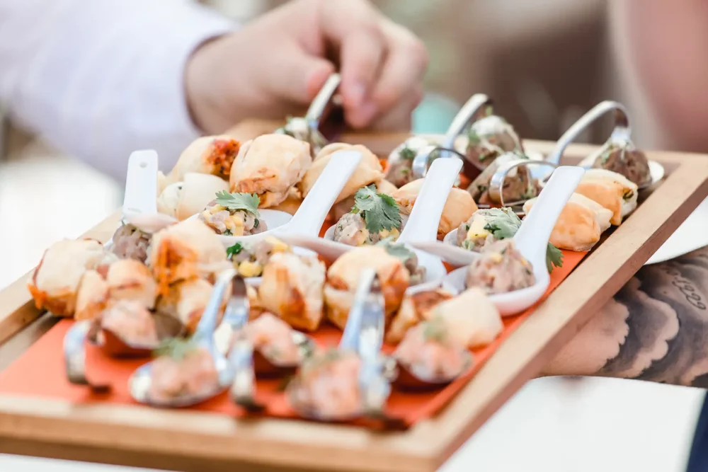Ein leckerer Sektempfang mit feinsten Häppchen wartete auf die Hochzeitsgesellschaft nach der Trauung und alle genossen den herrlich warmen Hochzeitstag in Nürnberg.