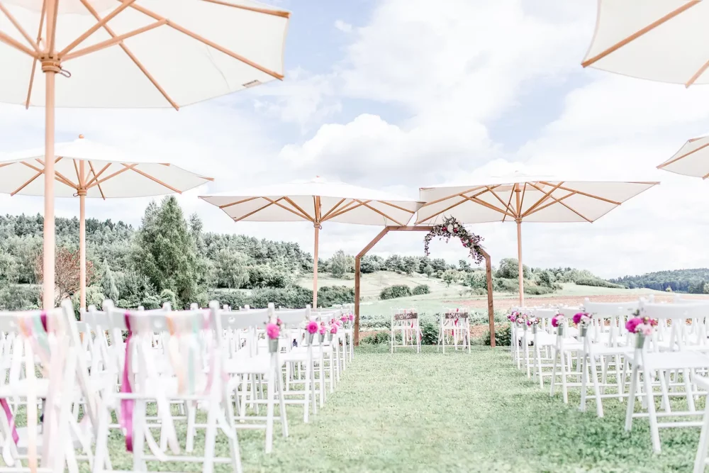 Inmitten einem Meer von bunten Sommerblumen feierten Ali & Fill ihre freie Trauung auf einer Wiese in Hilzhofen. Alle waren dabei – ihr kleiner Sohn, die liebsten Freunde, die engste Familie. Eine feine, kleine Gesellschaft.