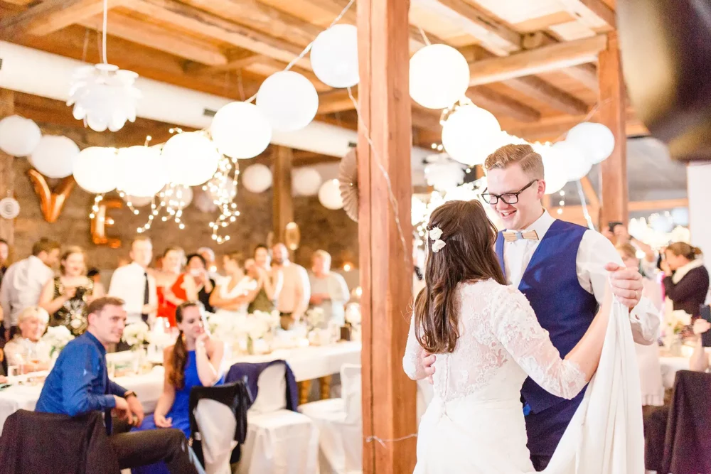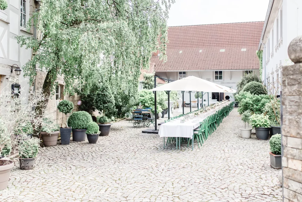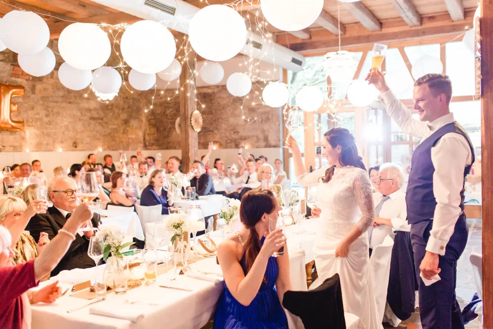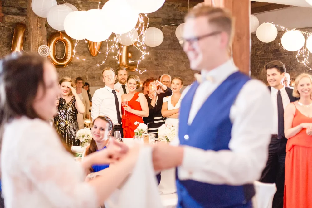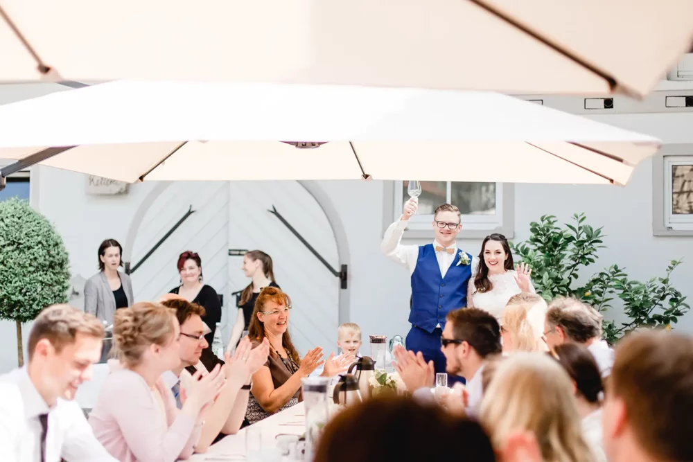 Wir wurden wie Freunde in Biankas und Max‘ Hochzeitsgesellschaft aufgenommen. Der ganze Tag war umgeben von herzlicher und ungezwungener Atmosphäre. Und der hübsche Winzerhof Stahl, den sich die beiden als ihre Hochzeitslocation im Raum Würzburg ausgesucht hatten, zeigte sich mit all seinem rustikalen Charme von seiner besten Seite.