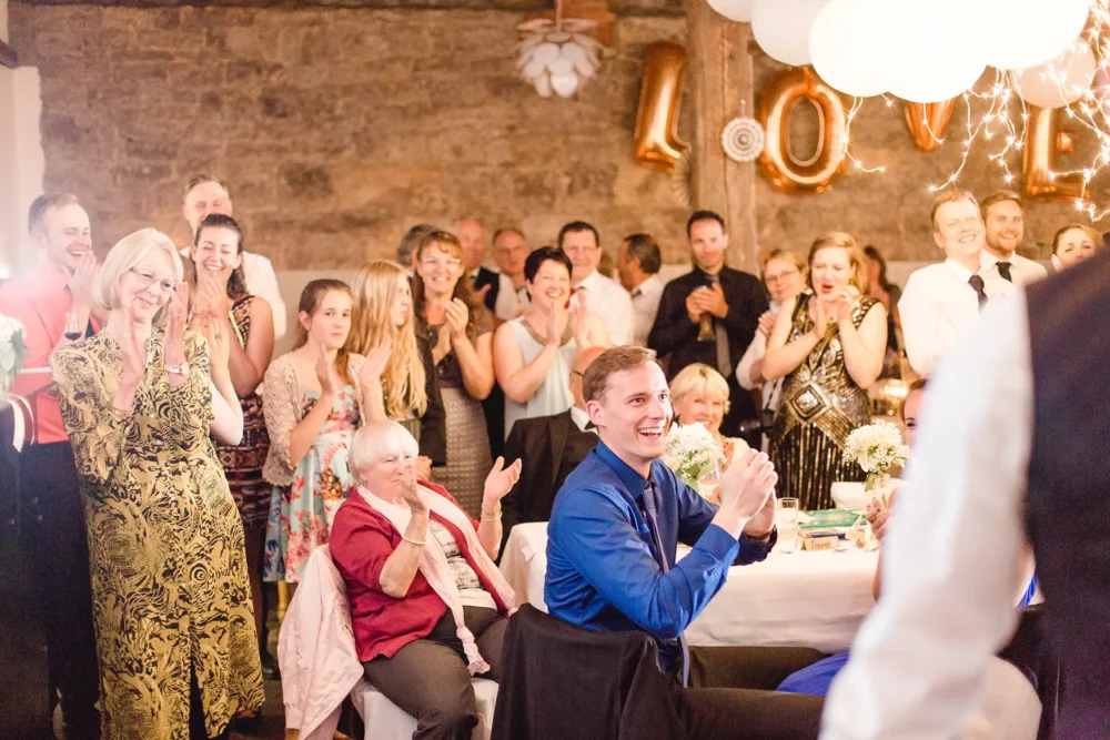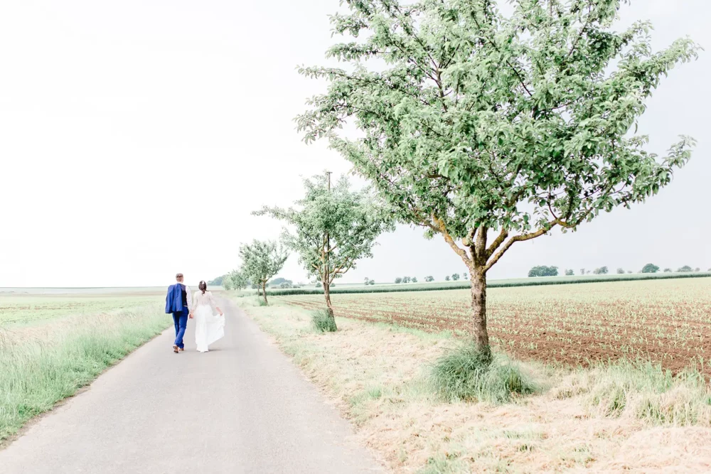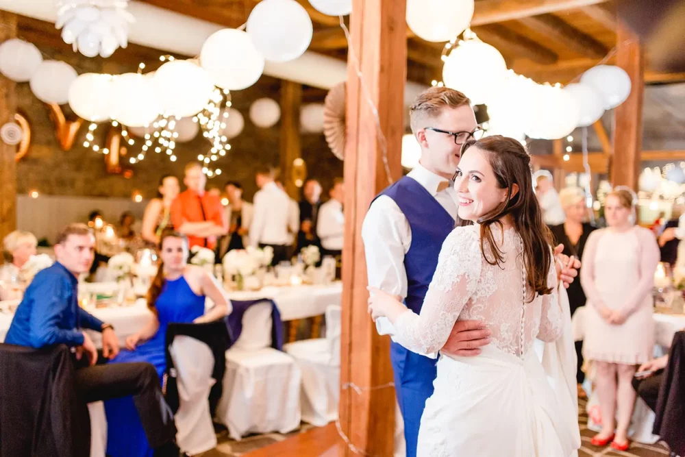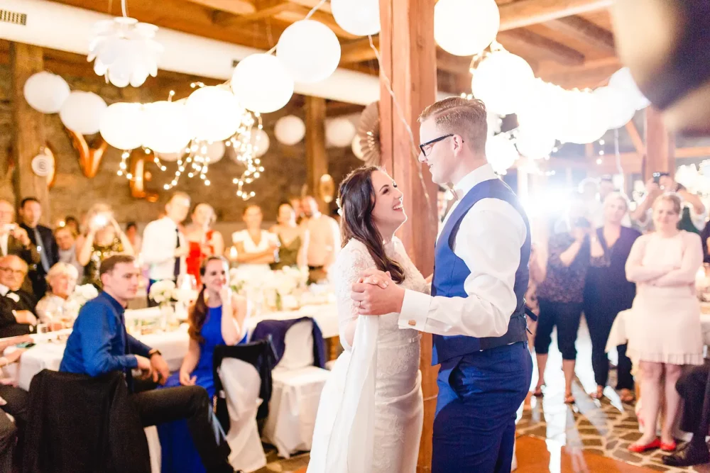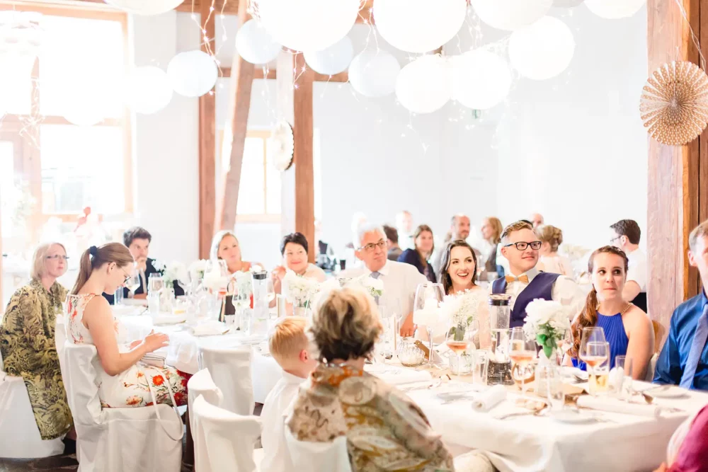 Wir wurden wie Freunde in Biankas und Max‘ Hochzeitsgesellschaft aufgenommen. Der ganze Tag war umgeben von herzlicher und ungezwungener Atmosphäre. Und der hübsche Winzerhof Stahl, den sich die beiden als ihre Hochzeitslocation im Raum Würzburg ausgesucht hatten, zeigte sich mit all seinem rustikalen Charme von seiner besten Seite.